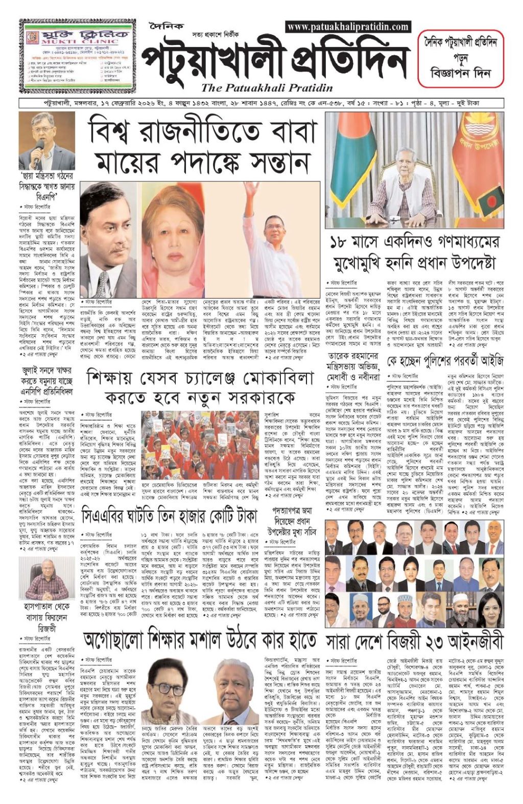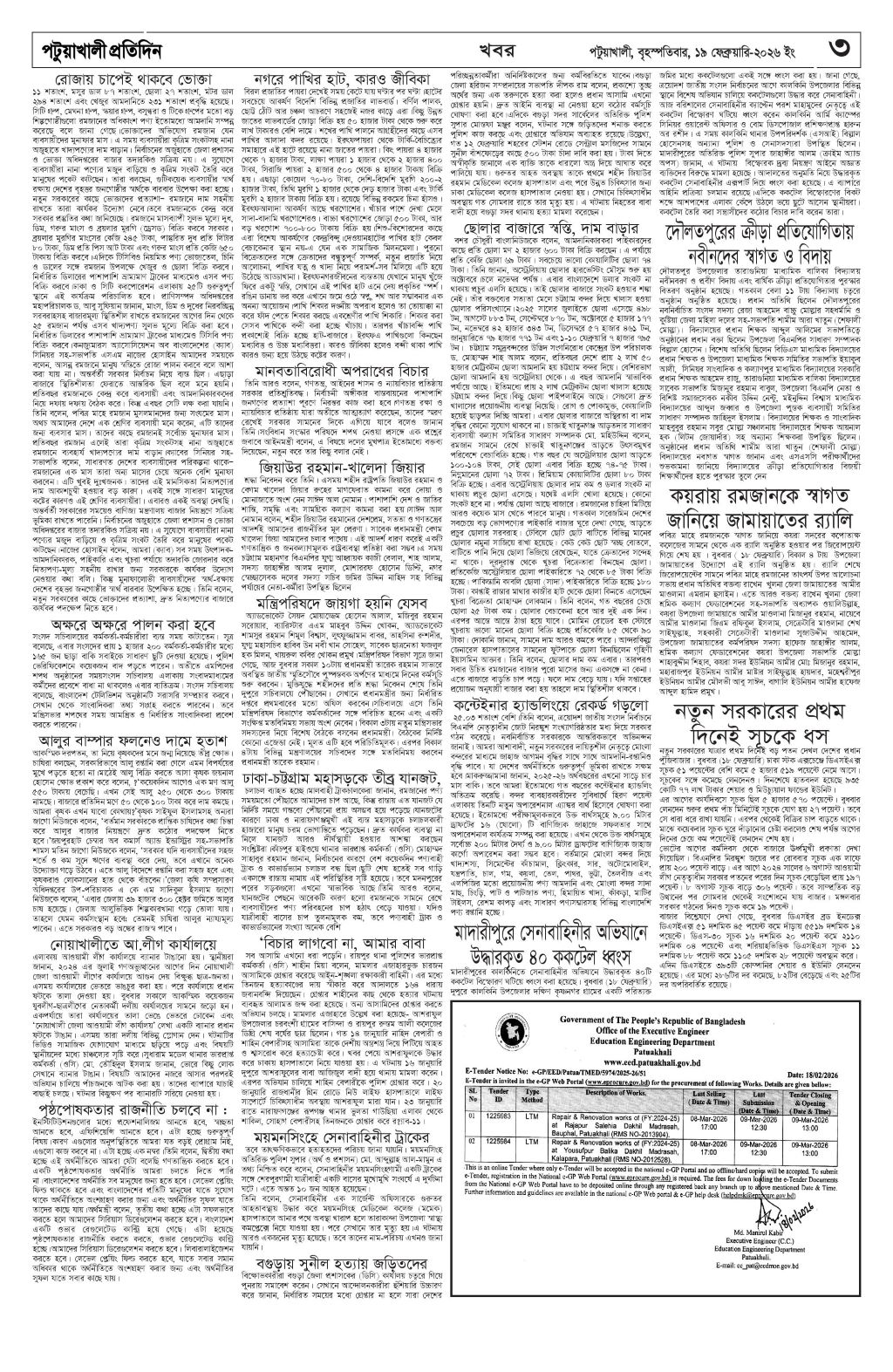 ই-পেপার 0 19 By মশিউর রহমান February 19, 2026 Total0 Facebook0 Twitter0 Pinterest0 LinkedIn0 ই-পেপার Total0 Facebook0 Twitter0 Pinterest0 LinkedIn0 Share FacebookTwitterPinterestWhatsApp